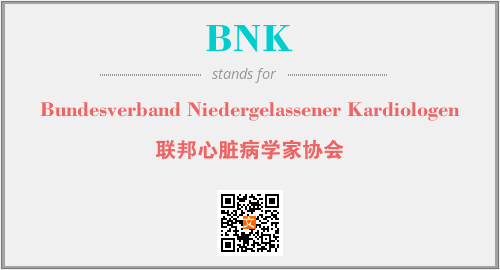 上述内容是“Bundesverband Niedergelassener Kardiologen”作为“BNK”的缩写,解释为“联邦心脏病学家协会”时的信息,以及英文缩略词BNK所代表的英文单词,其对应的中文拼音、详细解释以及在英文中的流行度和相关分类、应用领域及应用示例等。