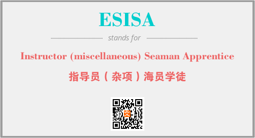 英文缩略词“ESISA”经常作为“Instructor (miscellaneous) Seaman Apprentice”的英文缩写来使用,中文表示:“指导员(杂项)海员学徒”。本文将详细介绍英文缩写词ESISA所代表英文单词,其对应的中文拼音、详细解释以及在英语中的流行度。此外,还有关于缩略词ESISA的分类、应用领域及相关应用示例等。