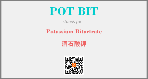 上述内容是“Potassium Bitartrate”作为“POT BIT”的缩写,解释为“酒石酸钾”时的信息,以及英文缩略词POT BIT所代表的英文单词,其对应的中文拼音、详细解释以及在英文中的流行度和相关分类、应用领域及应用示例等。