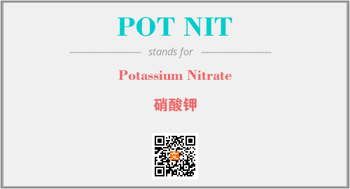 上述内容是“Potassium Nitrate”作为“POT NIT”的缩写,解释为“硝酸钾”时的信息,以及英文缩略词POT NIT所代表的英文单词,其对应的中文拼音、详细解释以及在英文中的流行度和相关分类、应用领域及应用示例等。