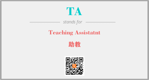 英文缩略词“TA”经常作为“Teaching Assistatnt”的英文缩写来使用,中文表示:“助教”。本文将详细介绍英文缩写词TA所代表英文单词,其对应的中文拼音、详细解释以及在英语中的流行度。此外,还有关于缩略词TA的分类、应用领域及相关应用示例等。