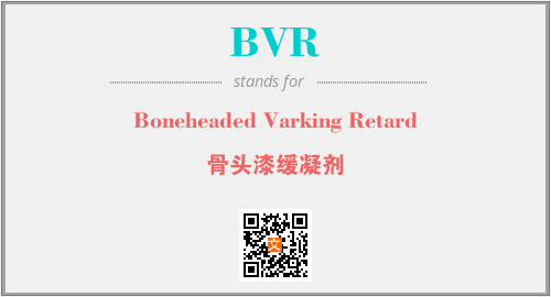 英文缩略词“BVR”经常作为“Boneheaded Varking Retard”的英文缩写来使用,中文表示:“骨头漆缓凝剂”。本文将详细介绍英文缩写词BVR所代表英文单词,其对应的中文拼音、详细解释以及在英语中的流行度。此外,还有关于缩略词BVR的分类、应用领域及相关应用示例等。