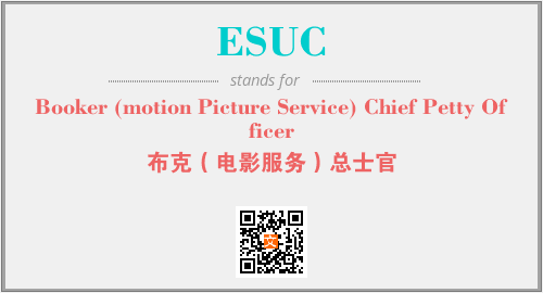 英文缩略词“ESUC”经常作为“Booker (motion Picture Service) Chief Petty Officer”的英文缩写来使用,中文表示:“布克(电影服务)总士官”。本文将详细介绍英文缩写词ESUC所代表英文单词,其对应的中文拼音、详细解释以及在英语中的流行度。此外,还有关于缩略词ESUC的分类、应用领域及相关应用示例等。
