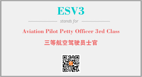 英文缩略词“ESV3”经常作为“Aviation Pilot Petty Officer 3rd Class”的英文缩写来使用,中文表示:“三等航空驾驶员士官”。本文将详细介绍英文缩写词ESV3所代表英文单词,其对应的中文拼音、详细解释以及在英语中的流行度。此外,还有关于缩略词ESV3的分类、应用领域及相关应用示例等。