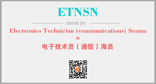 英文缩略词“ETNSN”经常作为“Electronics Technician (communications) Seaman”的英文缩写来使用,中文表示:“电子技术员(通信)海员”。本文将详细介绍英文缩写词ETNSN所代表英文单词,其对应的中文拼音、详细解释以及在英语中的流行度。此外,还有关于缩略词ETNSN的分类、应用领域及相关应用示例等。