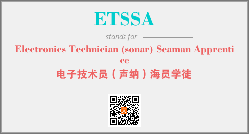 英文缩略词“ETSSA”经常作为“Electronics Technician (sonar) Seaman Apprentice”的英文缩写来使用,中文表示:“电子技术员(声纳)海员学徒”。本文将详细介绍英文缩写词ETSSA所代表英文单词,其对应的中文拼音、详细解释以及在英语中的流行度。此外,还有关于缩略词ETSSA的分类、应用领域及相关应用示例等。