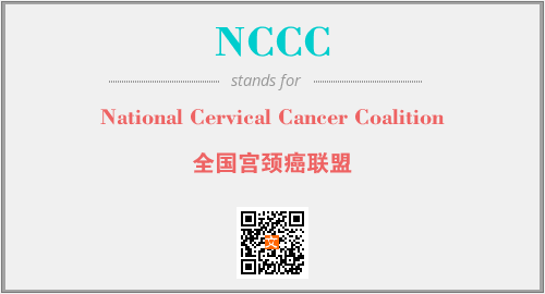 上述内容是“National Cervical Cancer Coalition”作为“NCCC”的缩写,解释为“全国宫颈癌联盟”时的信息,以及英文缩略词NCCC所代表的英文单词,其对应的中文拼音、详细解释以及在英文中的流行度和相关分类、应用领域及应用示例等。