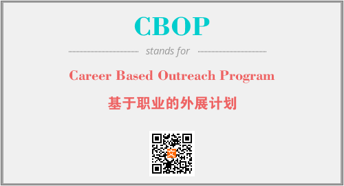上述内容是“Career Based Outreach Program”作为“CBOP”的缩写,解释为“基于职业的外展计划”时的信息,以及英文缩略词CBOP所代表的英文单词,其对应的中文拼音、详细解释以及在英文中的流行度和相关分类、应用领域及应用示例等。