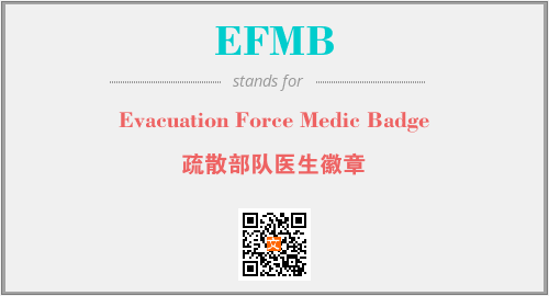 以上为Evacuation Force Medic Badge英文缩略词EFMB的中文解释,以及该英文缩写在英语的流行度、分类和应用领域方面的信息。