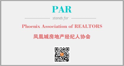 上述内容是“Phoenix Association of REALTORS”作为“PAR”的缩写,解释为“凤凰城房地产经纪人协会”时的信息,以及英文缩略词PAR所代表的英文单词,其对应的中文拼音、详细解释以及在英文中的流行度和相关分类、应用领域及应用示例等。
