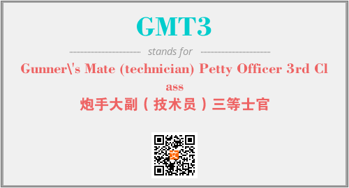 英文缩略词“GMT3”经常作为“Gunner\'s Mate (technician) Petty Officer 3rd Class”的英文缩写来使用,中文表示:“炮手大副(技术员)三等士官”。本文将详细介绍英文缩写词GMT3所代表英文单词,其对应的中文拼音、详细解释以及在英语中的流行度。此外,还有关于缩略词GMT3的分类、应用领域及相关应用示例等。