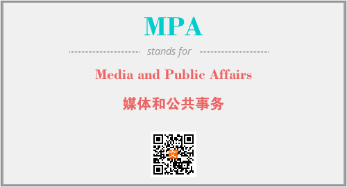 以上为Media and Public Affairs英文缩略词MPA的中文解释,以及该英文缩写在英语的流行度、分类和应用领域方面的信息。