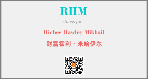 上述内容是“Riches Hawley Mikhail”作为“RHM”的缩写,解释为“财富霍利·米哈伊尔”时的信息,以及英文缩略词RHM所代表的英文单词,其对应的中文拼音、详细解释以及在英文中的流行度和相关分类、应用领域及应用示例等。