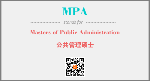 以上为Masters of Public Administration英文缩略词MPA的中文解释,以及该英文缩写在英语的流行度、分类和应用领域方面的信息。