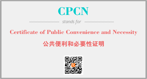 英文缩略词“CPCN”经常作为“Certificate of Public Convenience and Necessity”的英文缩写来使用,中文表示:“公共便利和必要性证明”。本文将详细介绍英文缩写词CPCN所代表英文单词,其对应的中文拼音、详细解释以及在英语中的流行度。此外,还有关于缩略词CPCN的分类、应用领域及相关应用示例等。