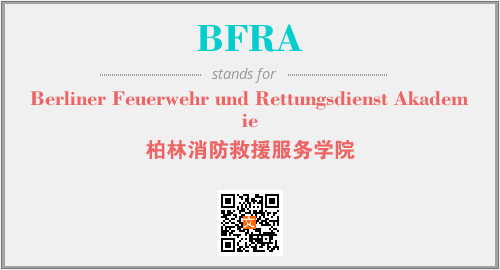 上述内容是“Berliner Feuerwehr und Rettungsdienst Akademie”作为“BFRA”的缩写,解释为“柏林消防救援服务学院”时的信息,以及英文缩略词BFRA所代表的英文单词,其对应的中文拼音、详细解释以及在英文中的流行度和相关分类、应用领域及应用示例等。