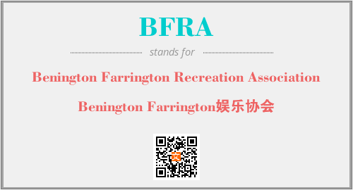 上述内容是“Benington Farrington Recreation Association”作为“BFRA”的缩写,解释为“Benington Farrington娱乐协会”时的信息,以及英文缩略词BFRA所代表的英文单词,其对应的中文拼音、详细解释以及在英文中的流行度和相关分类、应用领域及应用示例等。