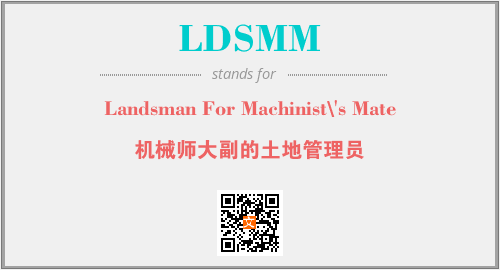 英文缩略词“LDSMM”经常作为“Landsman For Machinist\'s Mate”的英文缩写来使用,中文表示:“机械师大副的土地管理员”。本文将详细介绍英文缩写词LDSMM所代表英文单词,其对应的中文拼音、详细解释以及在英语中的流行度。此外,还有关于缩略词LDSMM的分类、应用领域及相关应用示例等。
