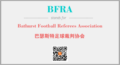 上述内容是“Bathurst Football Referees Association”作为“BFRA”的缩写,解释为“巴瑟斯特足球裁判协会”时的信息,以及英文缩略词BFRA所代表的英文单词,其对应的中文拼音、详细解释以及在英文中的流行度和相关分类、应用领域及应用示例等。