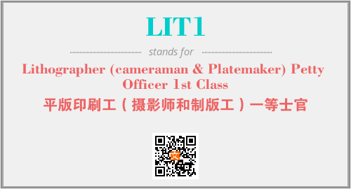 上述内容是“Lithographer (cameraman & Platemaker) Petty Officer 1st Class”作为“LIT1”的缩写,解释为“平版印刷工(摄影师和制版工)一等士官”时的信息,以及英文缩略词LIT1所代表的英文单词,其对应的中文拼音、详细解释以及在英文中的流行度和相关分类、应用领域及应用示例等。