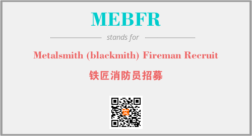 上述内容是“Metalsmith (blackmith) Fireman Recruit”作为“MEBFR”的缩写,解释为“铁匠消防员招募”时的信息,以及英文缩略词MEBFR所代表的英文单词,其对应的中文拼音、详细解释以及在英文中的流行度和相关分类、应用领域及应用示例等。