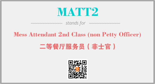 上述内容是“Mess Attendant 2nd Class (non Petty Officer)”作为“MATT2”的缩写,解释为“二等餐厅服务员(非士官)”时的信息,以及英文缩略词MATT2所代表的英文单词,其对应的中文拼音、详细解释以及在英文中的流行度和相关分类、应用领域及应用示例等。