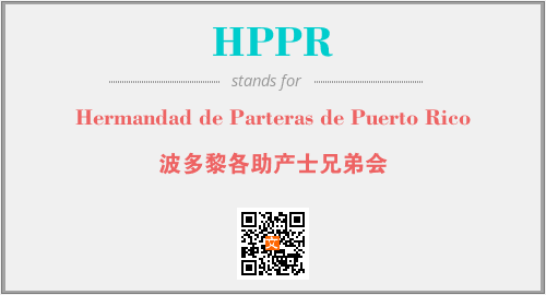 英文缩略词“HPPR”经常作为“Hermandad de Parteras de Puerto Rico”的英文缩写来使用,中文表示:“波多黎各助产士兄弟会”。本文将详细介绍英文缩写词HPPR所代表英文单词,其对应的中文拼音、详细解释以及在英语中的流行度。此外,还有关于缩略词HPPR的分类、应用领域及相关应用示例等。