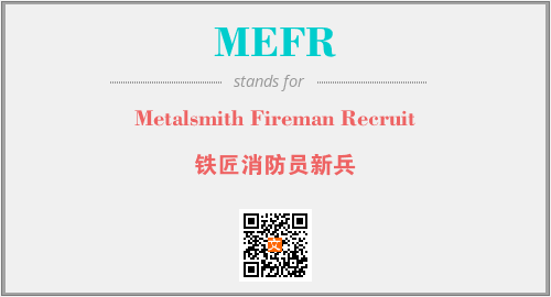 上述内容是“Metalsmith Fireman Recruit”作为“MEFR”的缩写,解释为“铁匠消防员新兵”时的信息,以及英文缩略词MEFR所代表的英文单词,其对应的中文拼音、详细解释以及在英文中的流行度和相关分类、应用领域及应用示例等。