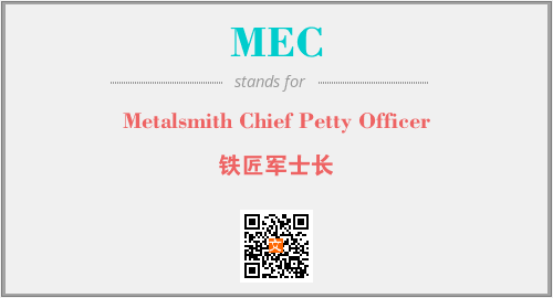 英文缩略词“MEC”经常作为“Metalsmith Chief Petty Officer”的英文缩写来使用,中文表示:“铁匠军士长”。本文将详细介绍英文缩写词MEC所代表英文单词,其对应的中文拼音、详细解释以及在英语中的流行度。此外,还有关于缩略词MEC的分类、应用领域及相关应用示例等。