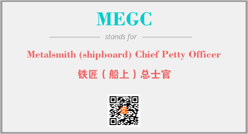 上述内容是“Metalsmith (shipboard) Chief Petty Officer”作为“MEGC”的缩写,解释为“铁匠(船上)总士官”时的信息,以及英文缩略词MEGC所代表的英文单词,其对应的中文拼音、详细解释以及在英文中的流行度和相关分类、应用领域及应用示例等。