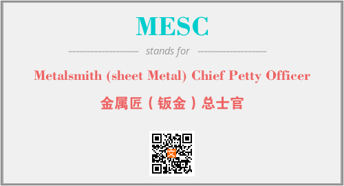 上述内容是“Metalsmith (sheet Metal) Chief Petty Officer”作为“MESC”的缩写,解释为“金属匠(钣金)总士官”时的信息,以及英文缩略词MESC所代表的英文单词,其对应的中文拼音、详细解释以及在英文中的流行度和相关分类、应用领域及应用示例等。