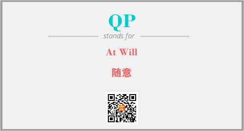 上述内容是“At Will”作为“QP”的缩写,解释为“随意”时的信息,以及英文缩略词QP所代表的英文单词,其对应的中文拼音、详细解释以及在英文中的流行度和相关分类、应用领域及应用示例等。