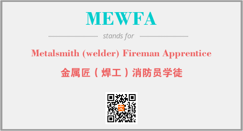 上述内容是“Metalsmith (welder) Fireman Apprentice”作为“MEWFA”的缩写,解释为“金属匠(焊工)消防员学徒”时的信息,以及英文缩略词MEWFA所代表的英文单词,其对应的中文拼音、详细解释以及在英文中的流行度和相关分类、应用领域及应用示例等。