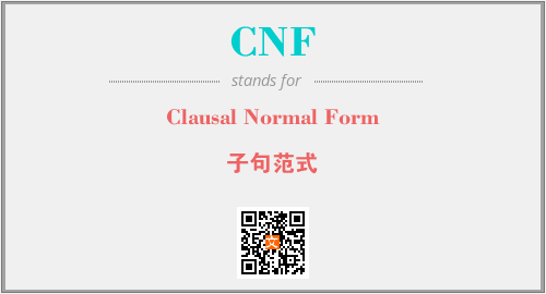 英文缩略词“CNF”经常作为“Clausal Normal Form”的英文缩写来使用,中文表示:“子句范式”。本文将详细介绍英文缩写词CNF所代表英文单词,其对应的中文拼音、详细解释以及在英语中的流行度。此外,还有关于缩略词CNF的分类、应用领域及相关应用示例等。