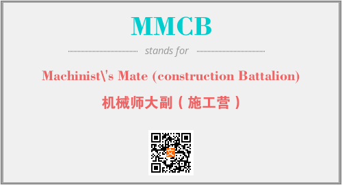 英文缩略词“MMCB”经常作为“Machinist\'s Mate (construction Battalion)”的英文缩写来使用,中文表示:“机械师大副(施工营)”。本文将详细介绍英文缩写词MMCB所代表英文单词,其对应的中文拼音、详细解释以及在英语中的流行度。此外,还有关于缩略词MMCB的分类、应用领域及相关应用示例等。