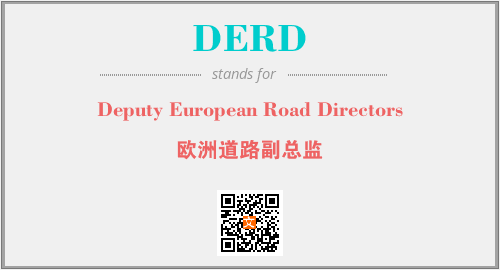 上述内容是“Deputy European Road Directors”作为“DERD”的缩写,解释为“欧洲道路副总监”时的信息,以及英文缩略词DERD所代表的英文单词,其对应的中文拼音、详细解释以及在英文中的流行度和相关分类、应用领域及应用示例等。