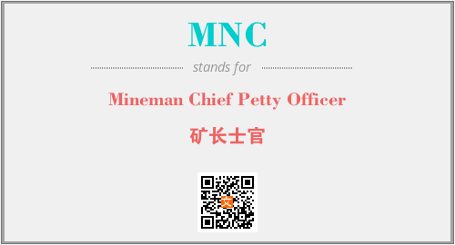 英文缩略词“MNC”经常作为“Mineman Chief Petty Officer”的英文缩写来使用,中文表示:“矿长士官”。本文将详细介绍英文缩写词MNC所代表英文单词,其对应的中文拼音、详细解释以及在英语中的流行度。此外,还有关于缩略词MNC的分类、应用领域及相关应用示例等。