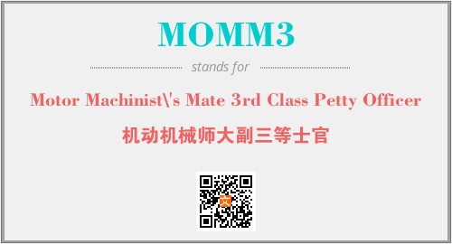 以上为Motor Machinist\'s Mate 3rd Class Petty Officer英文缩略词MOMM3的中文解释,以及该英文缩写在英语的流行度、分类和应用领域方面的信息。