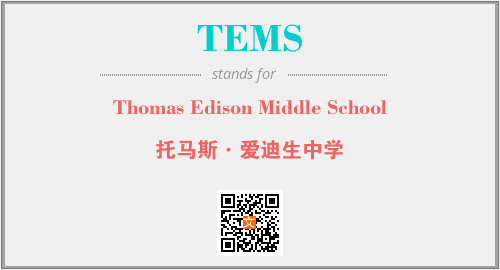 上述内容是“Thomas Edison Middle School”作为“TEMS”的缩写,解释为“托马斯·爱迪生中学”时的信息,以及英文缩略词TEMS所代表的英文单词,其对应的中文拼音、详细解释以及在英文中的流行度和相关分类、应用领域及应用示例等。