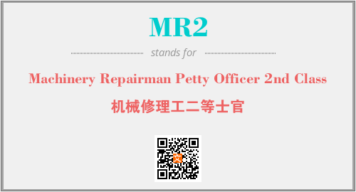 以上为Machinery Repairman Petty Officer 2nd Class英文缩略词MR2的中文解释,以及该英文缩写在英语的流行度、分类和应用领域方面的信息。