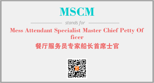 上述内容是“Mess Attendant Specialist Master Chief Petty Officer”作为“MSCM”的缩写,解释为“餐厅服务员专家船长首席士官”时的信息,以及英文缩略词MSCM所代表的英文单词,其对应的中文拼音、详细解释以及在英文中的流行度和相关分类、应用领域及应用示例等。