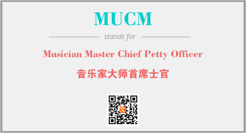 以上为Musician Master Chief Petty Officer英文缩略词MUCM的中文解释,以及该英文缩写在英语的流行度、分类和应用领域方面的信息。
