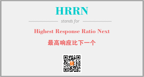 上述内容是“Highest Response Ratio Next”作为“HRRN”的缩写,解释为“最高响应比下一个”时的信息,以及英文缩略词HRRN所代表的英文单词,其对应的中文拼音、详细解释以及在英文中的流行度和相关分类、应用领域及应用示例等。
