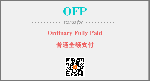上述内容是“Ordinary Fully Paid”作为“OFP”的缩写,解释为“普通全额支付”时的信息,以及英文缩略词OFP所代表的英文单词,其对应的中文拼音、详细解释以及在英文中的流行度和相关分类、应用领域及应用示例等。
