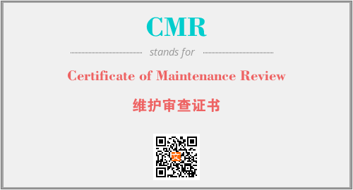 英文缩略词“CMR”经常作为“Certificate of Maintenance Review”的英文缩写来使用,中文表示:“维护审查证书”。本文将详细介绍英文缩写词CMR所代表英文单词,其对应的中文拼音、详细解释以及在英语中的流行度。此外,还有关于缩略词CMR的分类、应用领域及相关应用示例等。