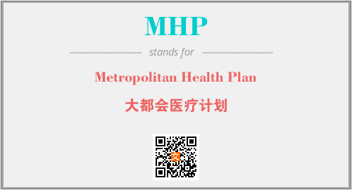 上述内容是“Metropolitan Health Plan”作为“MHP”的缩写,解释为“大都会医疗计划”时的信息,以及英文缩略词MHP所代表的英文单词,其对应的中文拼音、详细解释以及在英文中的流行度和相关分类、应用领域及应用示例等。