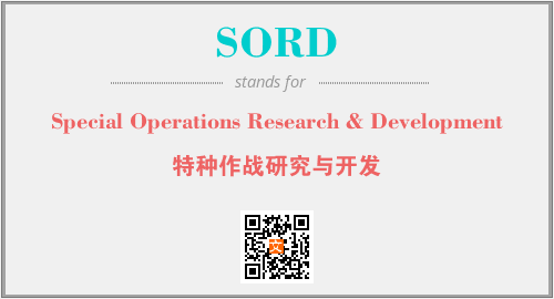 英文缩略词“SORD”经常作为“Special Operations Research & Development”的英文缩写来使用,中文表示:“特种作战研究与开发”。本文将详细介绍英文缩写词SORD所代表英文单词,其对应的中文拼音、详细解释以及在英语中的流行度。此外,还有关于缩略词SORD的分类、应用领域及相关应用示例等。