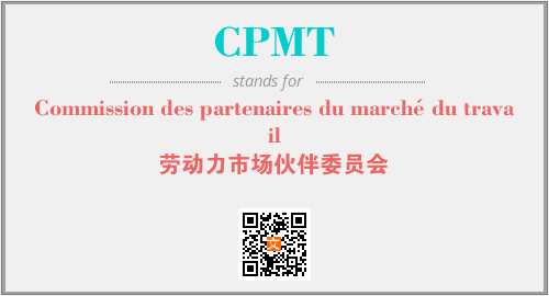 上述内容是“Commission des partenaires du marché du travail”作为“CPMT”的缩写,解释为“劳动力市场伙伴委员会”时的信息,以及英文缩略词CPMT所代表的英文单词,其对应的中文拼音、详细解释以及在英文中的流行度和相关分类、应用领域及应用示例等。