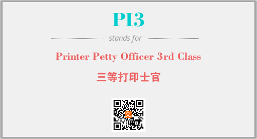 上述内容是“Printer Petty Officer 3rd Class”作为“PI3”的缩写,解释为“三等打印士官”时的信息,以及英文缩略词PI3所代表的英文单词,其对应的中文拼音、详细解释以及在英文中的流行度和相关分类、应用领域及应用示例等。
