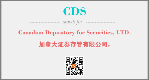 英文缩略词“CDS”经常作为“Canadian Depository for Securities, LTD.”的英文缩写来使用,中文表示:“加拿大证券存管有限公司。”。本文将详细介绍英文缩写词CDS所代表英文单词,其对应的中文拼音、详细解释以及在英语中的流行度。此外,还有关于缩略词CDS的分类、应用领域及相关应用示例等。